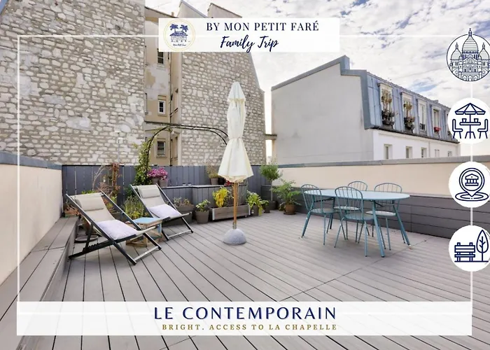 18th arr.Located around a 5-minute walk from Marx Dormoy underground station, Le Contemporain - Terrace & Near Montmartre Apartment Paris also boasts proximity to Eglise Saint-Denys de la Chapelle.View details+from