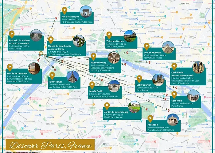 16th arr.Located in the 16th arr. district, the 50 m^2 Apartment Trocadero/Eiffel Tower Paris is just an 8-minute walk from Eiffel Tower and 3.4 km from Le Parc des Princes, which is recommended to be visited…View details+from