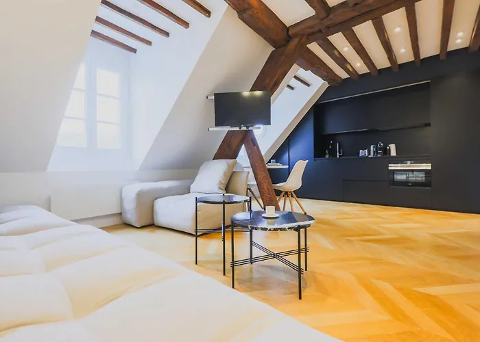 Paris City CentreSet in the very heart of Paris, 40 m^2 On The Rooftops Of Paris - Marais apartment is merely a 10-minute walk from the medieval catholic Cathedrale Notre-Dame de Paris.View details+from
