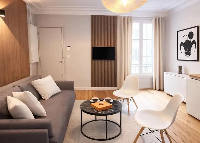 1st arr.Situated 5 minutes' walk from Quatre Septembre underground station, the 1-room Calm And Central Apartment Paris offers Wi-Fi for business or leisure needs. The 32 m^2 apartment is 17 minutes' stroll…View details+from