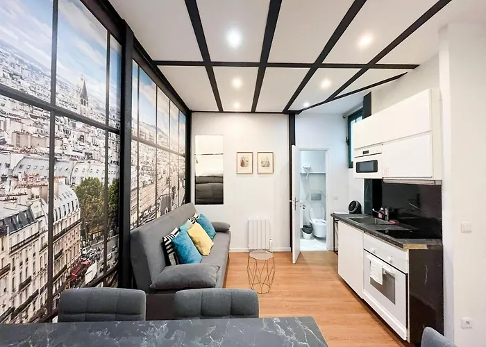 9 Rue De SuezThe 1-room Charming 30M^2 Border Of Montmartre Apartment Paris lies at a distance of 1.8 km from Moulin Rouge Dinner Theater and only 150 metres from Marcadet - Poissonniers tube station.View details+from