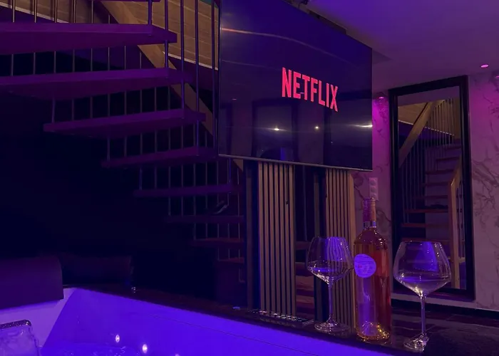 4 Rue Des PeupliersThe 70 m² La Suite Geneve Gaillard - Jacuzzi Prive & Sejour Luxe is located 10 minutes by car from the tremendous Geneva Water Fountain and 3.9 km from the scenic lakeside park "Parc de La Grange".View details+from